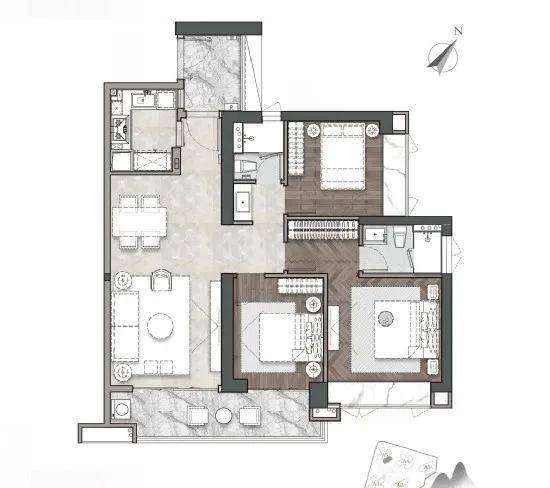 【A5-01/02户型】 建筑面积约120㎡三房两厅两卫