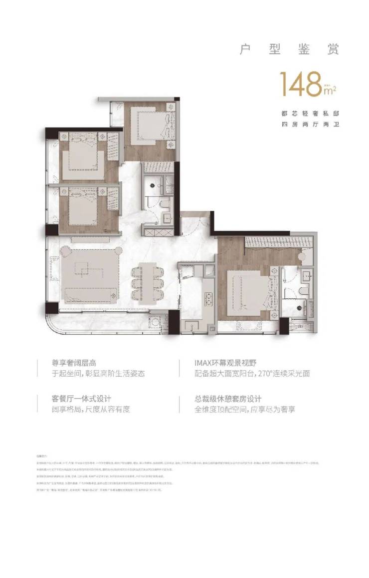 4. 148㎡四房二卫户型