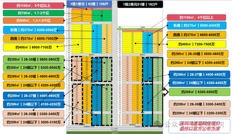 以下是深圳湾澐玺的吹风价格,单价约14万起步,总价3000万起,最高5个亿。