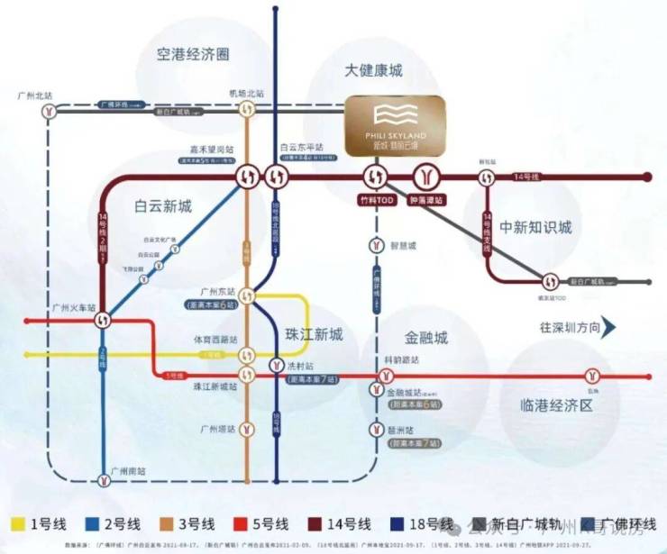 新白广城轨(在建中)1站白云机场,南向通达东莞和深圳。