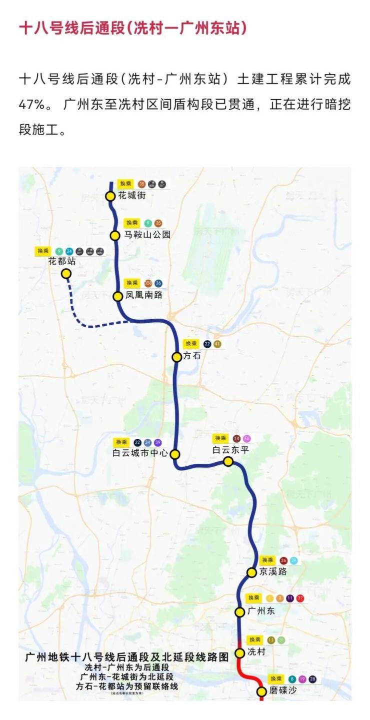 广佛环线(目前全线工程累计完成93%,预计2025年通车)3站天河智慧城,5站到琶洲;