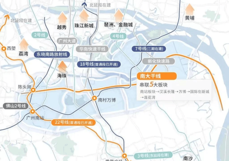 但站点距离项目仍有一定距离。隔壁山海连城小区门口有公交总站,番 131、番 77、86 巴士已投入运行,通过公交前往新造地铁较为方便。