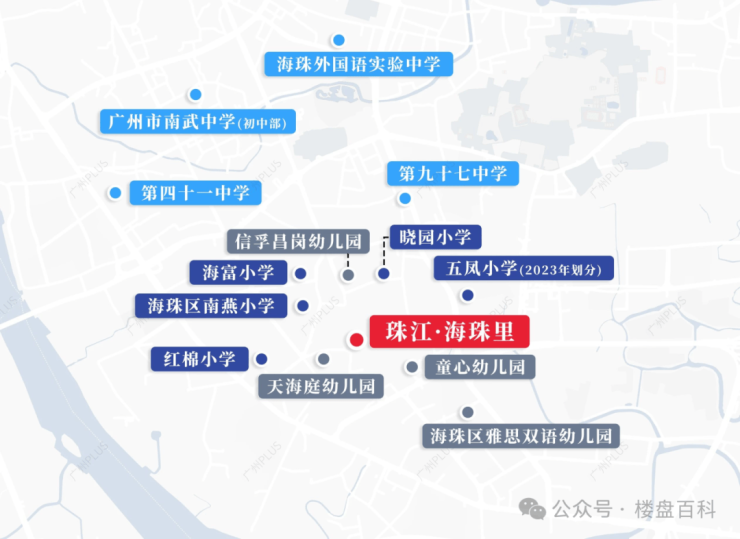 教育——家门口幼儿园,举步即达,从幼儿园到高等学府,12年一站式优质全龄教育配套全覆盖;1公里内超12所公立学校环伺,百年老校五凤小学的对口中学有9家,包括:南武中学校本部(国家级示范性学校)、第九十七中学(省一级)、海珠外国语实验中学(省一级)、第四十一中学校本部(省一级)等;