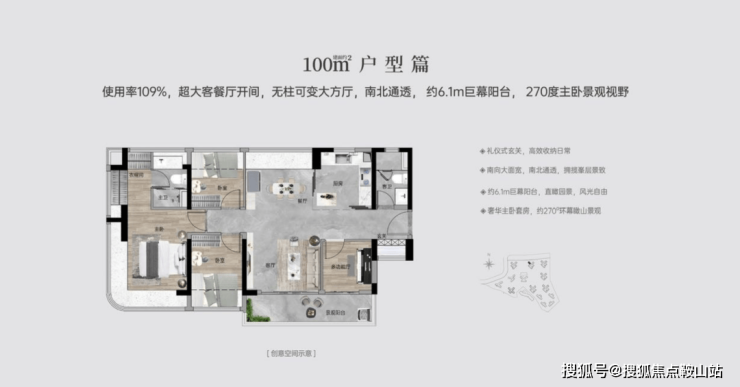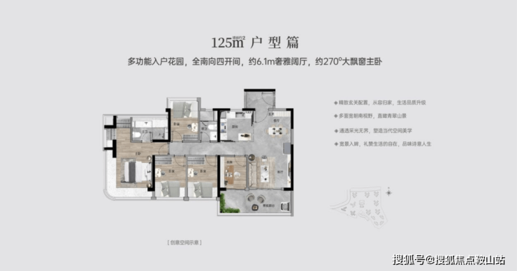 南向大面宽采光,主卧270°弧形飘窗瞰山景,打造自然宜居新场景
