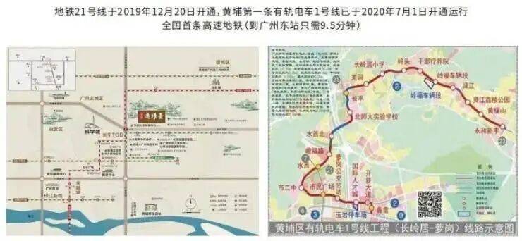 地铁21号线20分钟直达天河,黄埔第一条有轨电车就在家门口,全国首条高速地铁强势规划中,未来到广州东站只需9分钟。