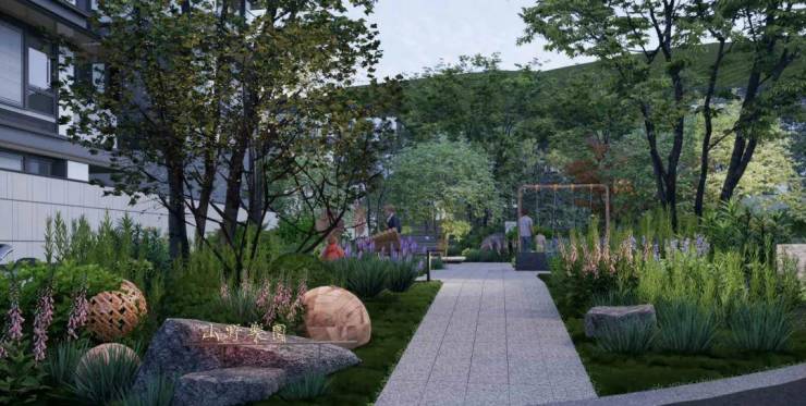 融入山地属性,将儿童自然玩呗落位在多个小尺度的野趣空间,同时也结合全龄段复合场景打造特色野趣儿童活动场地。