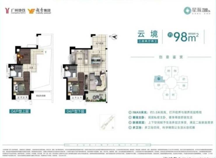 此外还有98㎡复式户型,上下分层的格局增加了空间利用率,适合喜欢复式结构的家庭。