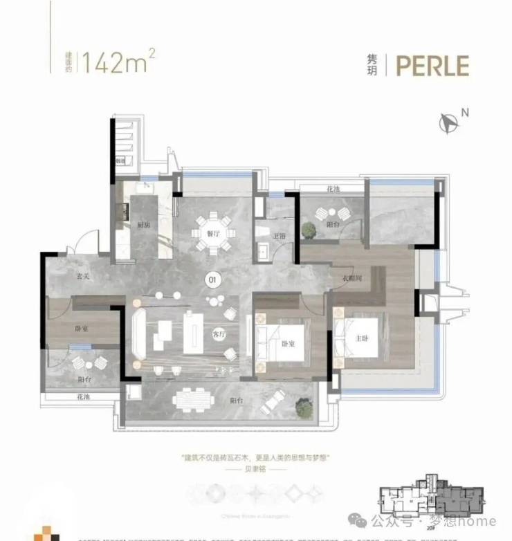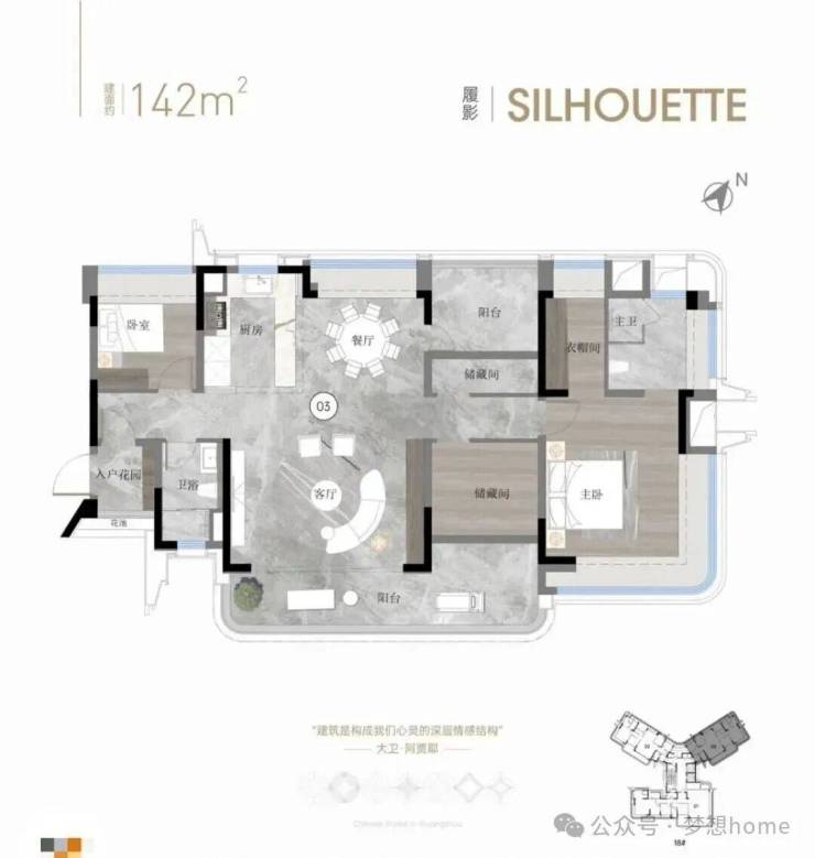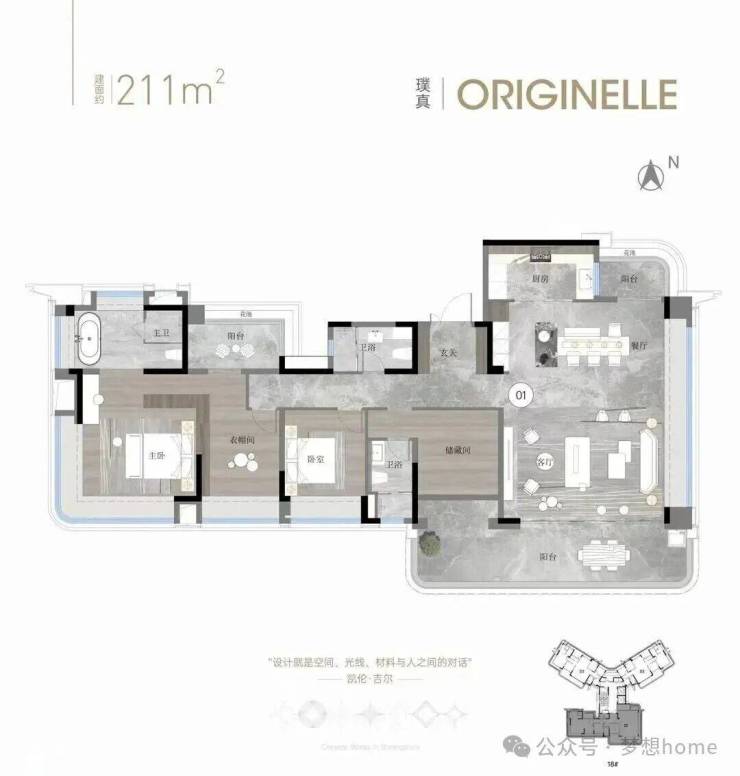 其中靠景观阳台一侧的多功能空间,既可以作为书房、收藏室等使用,又可以进行改造,作为主卧的拓展部分。