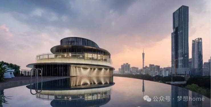 社区内部,则打造有高端会所——“弧光·琶洲城市会馆”,匹配琶洲城市新贵的社交需求,与一般项目会所不同,其首先令人眼前一亮的,便是极富艺术感的外观,圆弧玻璃幕墙,加上简约感的线条,展露出一种自然流动的美感。