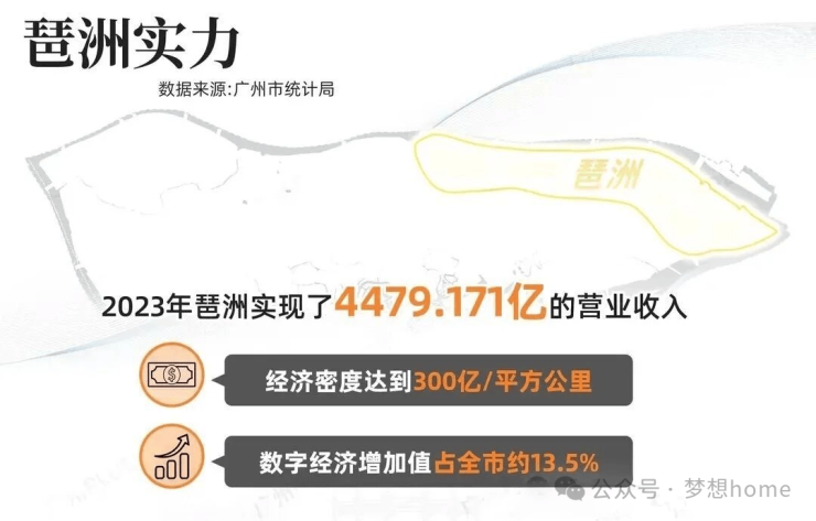 仅2023年,琶洲就实现了4479.171亿的营业收入,折算下来,经济密度达到300亿/平方公里!琶洲的数字经济增加值更占全市的13.5%,广州GDP突破3万亿大关,琶洲功不可没。