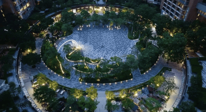 在凯旋新世界的中央,有一个包罗万象的商业之环。它将世界的潮流文化汇聚,轻轻镶嵌在花园里。