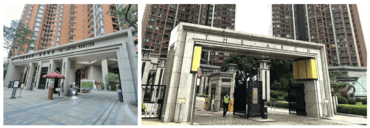 2007年,新世界地产把香港凯旋门复刻到了广州珠江新城。它完美延续了香港凯旋门的设计风格、色系、造型、甚至连大门也定制了同款。在地块四个转角上的楼栋,都沿用了经典的凯旋门造型。