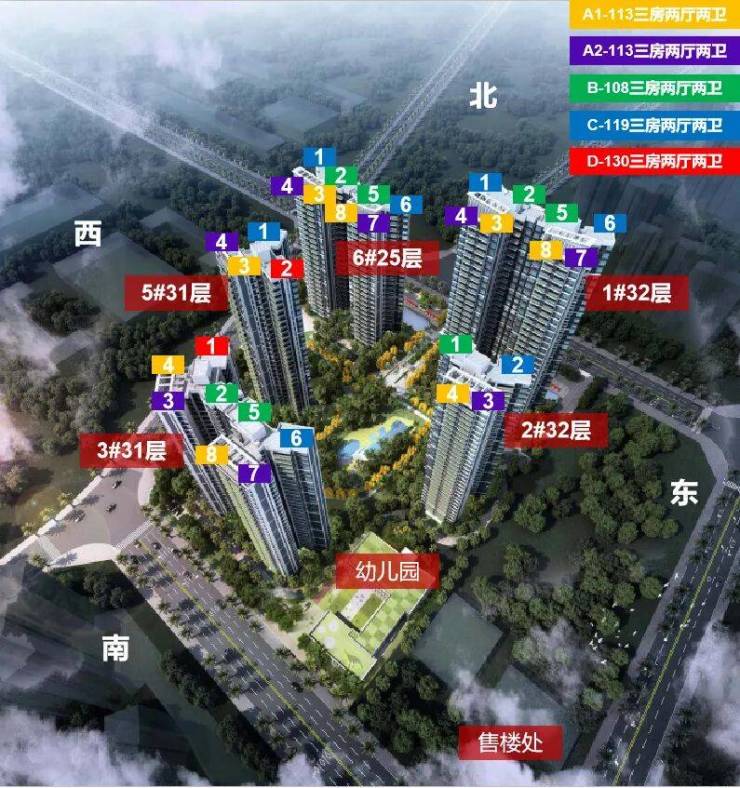 ✨楼层总高:1#楼32层,2#楼32层,3#楼31层,5#楼31层,6#楼25层;