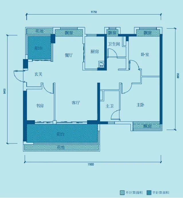 A1户型113㎡三房两厅两卫