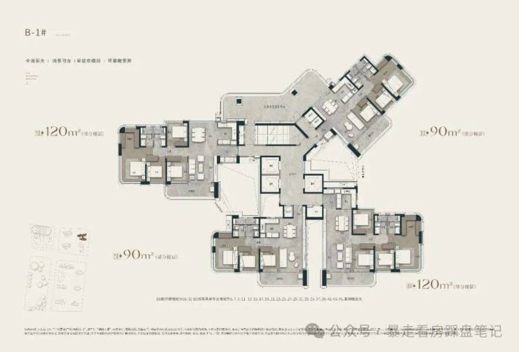 ◎产品配置:北区2T3/3T4塔楼,南区2T2板楼,建面约90-120-140-170-210㎡云幕平层