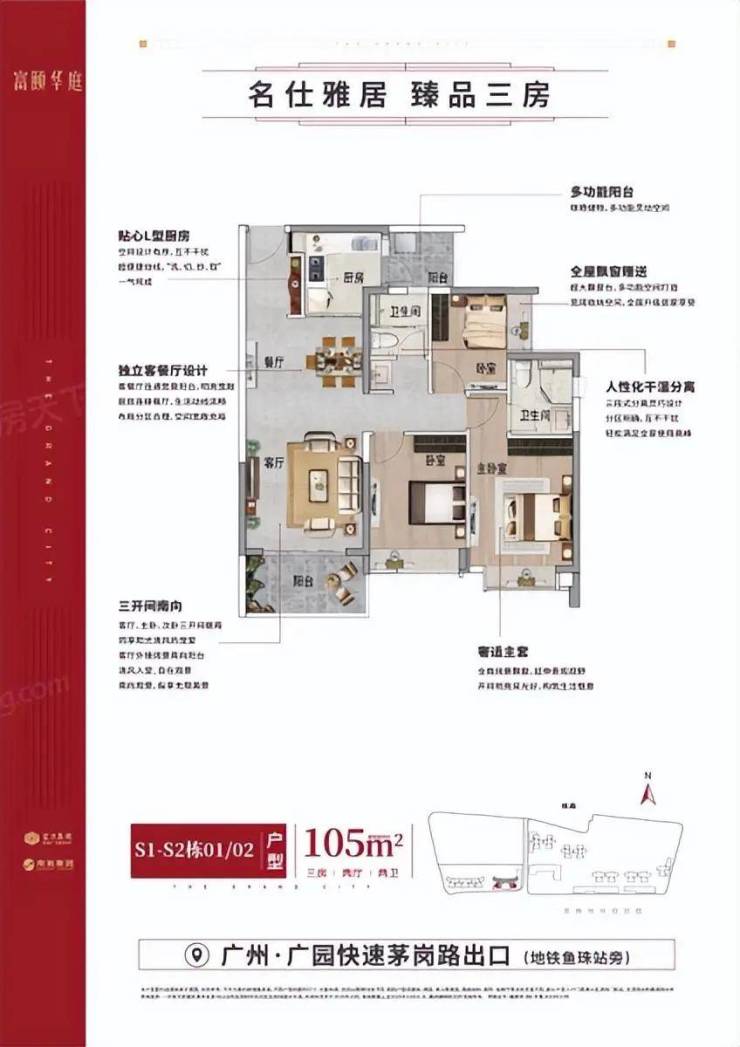 交通方面,富力南驰·富颐华庭临近地铁五号线和十三号线交汇站鱼珠站、十三号线珠村站以及十九号线茅岗站(规划中),8站即达珠江新城CBD及新塘综合交通枢纽,可快速通达天河主城以及深圳、东莞、惠州等周边城市。