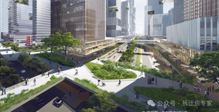 立体交通——未来片区多层次、多维度的立体绿色出行体系。双地铁上盖,市政规划的空中连廊系统,“0”距离接驳全城。