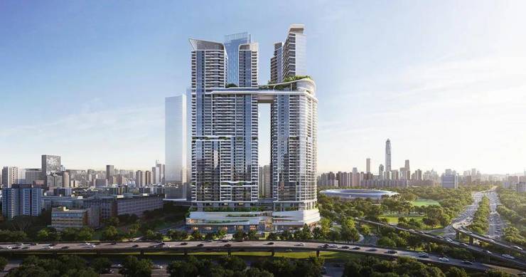 岁宝壹品择址深圳福田中轴核心区位,背倚城市发展主动脉,直面银湖山与笔架山的苍翠绵延。项目以独特的空间叙事,将一线城市景观与在地山林绿意进行创造性并置:向南俯瞰福田CBD的天际线律动,向北承接自然山体的静谧能量。地理维度的双重性,镜像出当代阶层追求的生活本质——既立于城市浪潮之巅把握机遇,亦渴望在自然韵律中获取生命原力。别具特色的建筑综合体,是由国际著名建筑事务所AEDAS凯达环球设计。