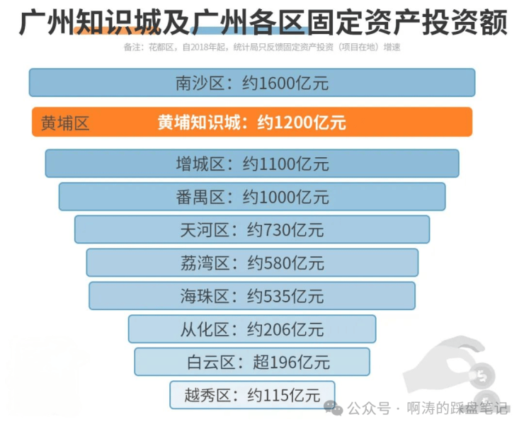 千亿投资:2023年,知识城固定资产投资额高达1200亿,远高于天河、番禺等区域。激昂奋进的知识城,是广州至具增量的高地