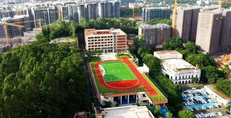 项目自身配建6班幼儿园,中小学由天河外国语智谷学校(已开学)统筹解决