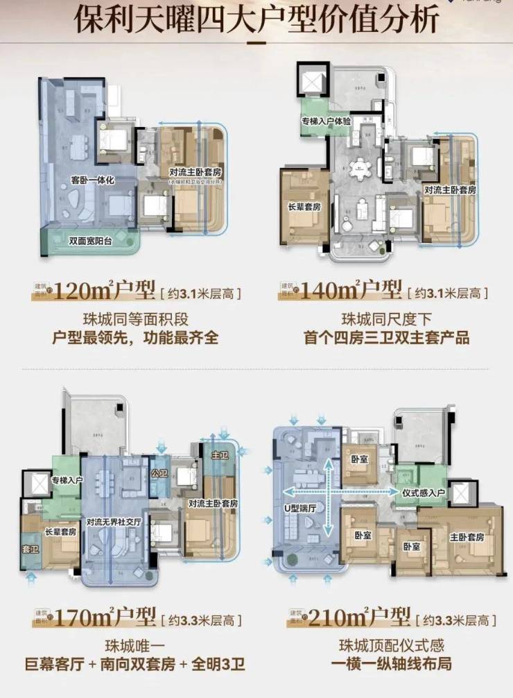 ◎户 型:建面约120-140-170-210㎡云幕平层