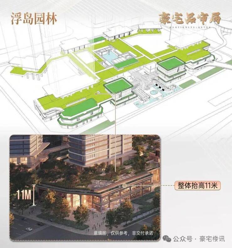 而利用这11米的纵向高度,保利打造了一套垂直立体的「浮岛园林」,总面积超过1.25万㎡。