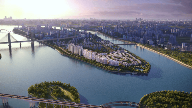 ①项目地处的洛溪岛,是继二沙岛之后,市中心第二个中轴岛,三江汇聚,处于城市中轴与珠江后航道的交汇处;