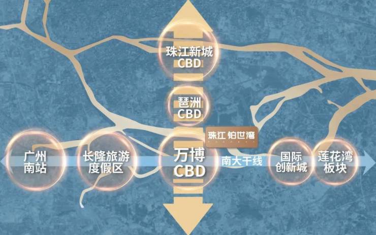 项目位于广州城市中轴与南大干线两条经济主轴的交汇处,也就是万博的核心区域。