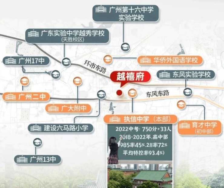 项目所属华乐街道,对口省级建设六马路小学。对口摇号8所省一级初中,包括执信中学、广大附中、第二中学、十六中学、育才中学、华侨外国语学校 。