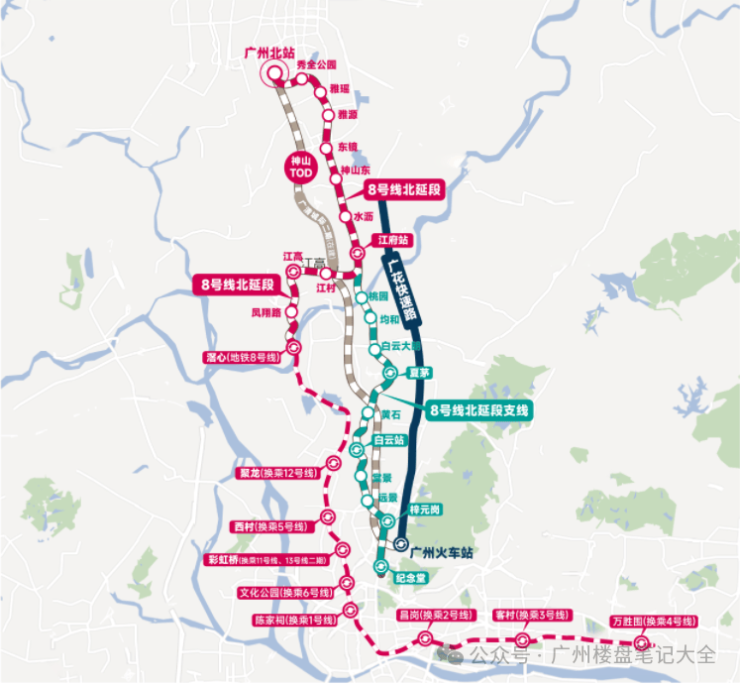 【交通配套】出门就是双地铁口,地铁8号线北延段及支线工程贯穿江高新城,零换乘直达越秀、海珠,可无缝换乘1号线、5号线、6号线等广州重要地铁轨道,通达全城繁华地段。在广州,南有南大干线,北有广花快速路,一条广花快速路纵贯广州北,双向免费八至十车道快速路,长达约18km,全程不设红绿灯,开启快速发展的新时代,约1个小时便可畅达广州全城。