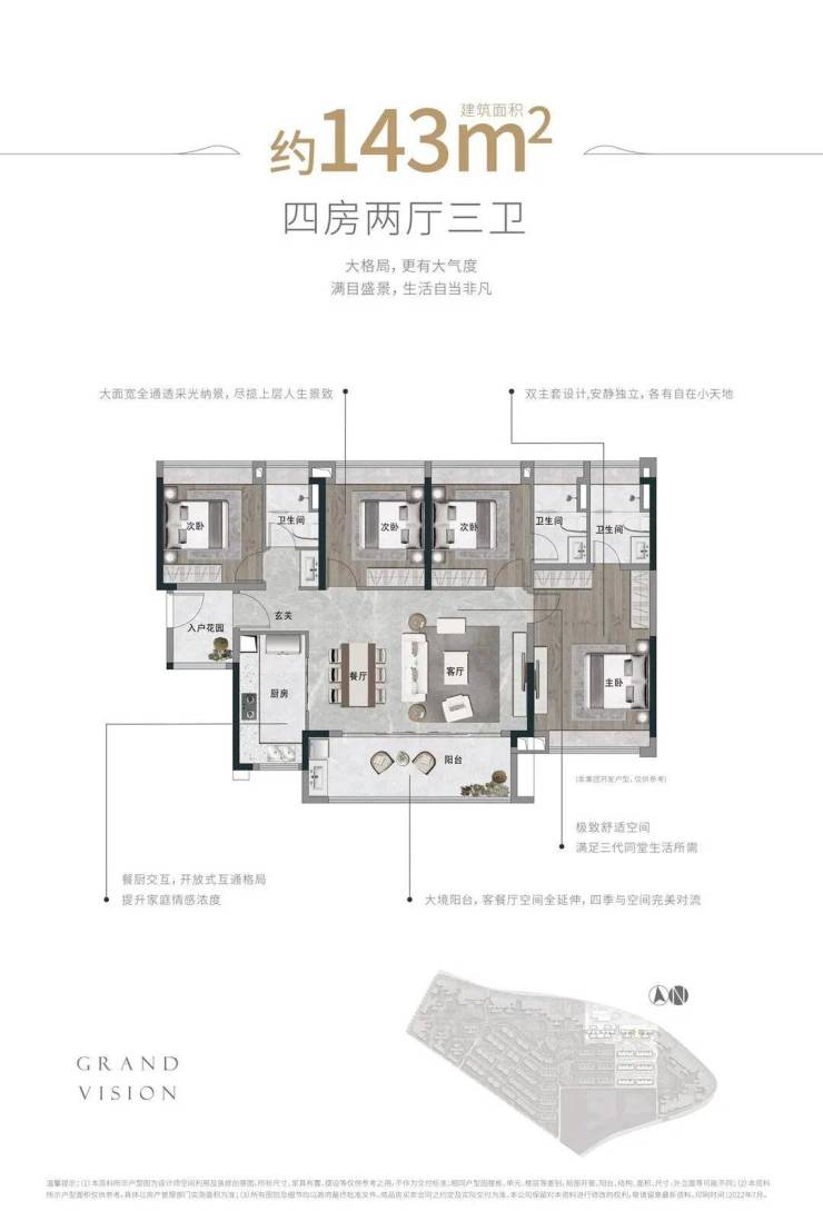 约4.2米阔绰客厅,更多共聚空间,大尺寸主卧套房,观景大飘窗空间随心定制