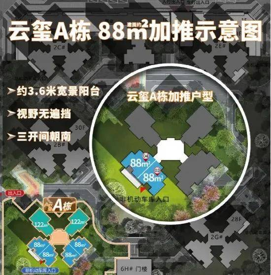 目前在售云玺组团,由7栋高层住宅构成,共计1144户,总占地约2.9万㎡,景观面积约2.2万㎡,绿化率高达39%,规划约140米超长景观绿轴;