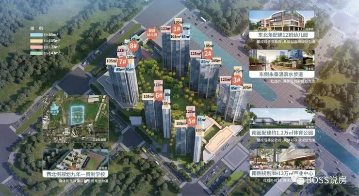 【医疗配套】配建约𝟔𝟎𝟎𝟎㎡社区服务中心(卫生服务、颐康等)项目自建𝟏所𝟏𝟐班幼儿园 南面配建𝟏.𝟐万㎡体育公园东侧政府规划永泰涌滨水步道