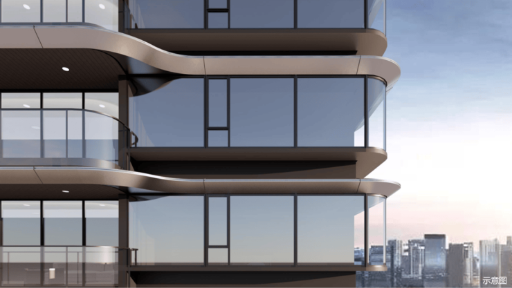 外立面采用钻感天幕公建化设计,0.36窗地比(行业均值≤0.25),采光与观景效果佳。