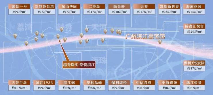 - 滨江中板块近十年无新宅地供应,周边多为楼龄15-20年的老旧小区,项目是区域内唯一在售新盘,且为珠江前航道海珠段唯一小户型江景盘。