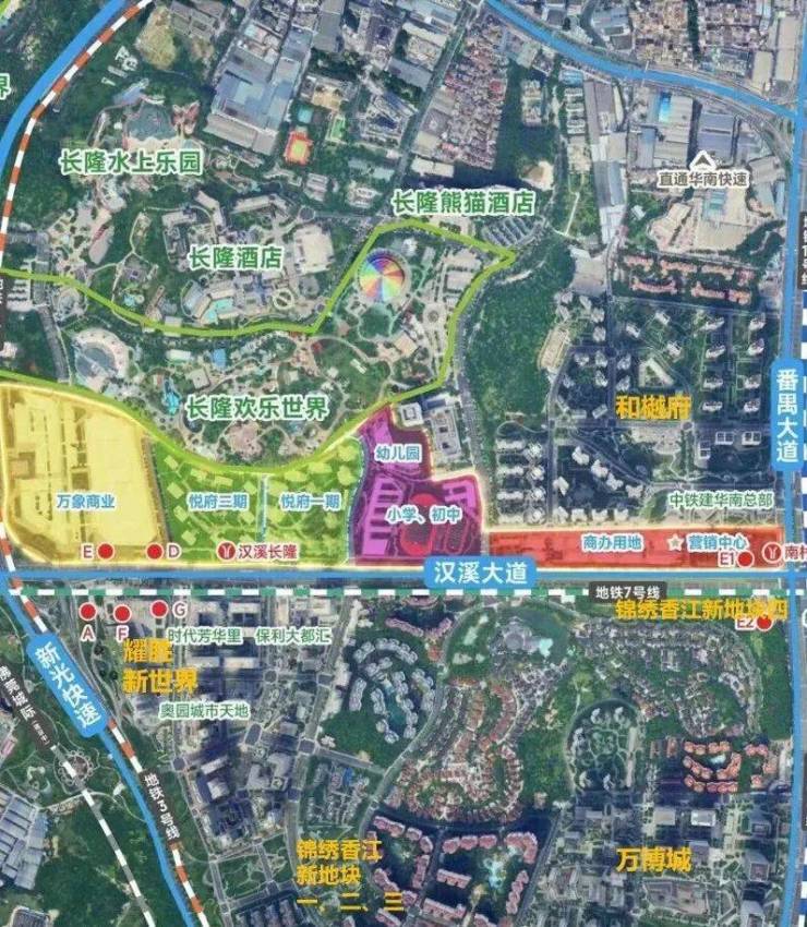二期距离地铁3/7号线汉溪长隆站就更近了,下楼就是地铁口