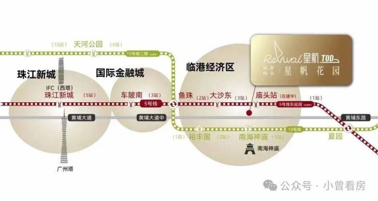 项目位于黄金主动脉地铁5号线庙头站(在建中,计划今年开通)上盖,近地铁13号线南海神庙站,双轨交汇。