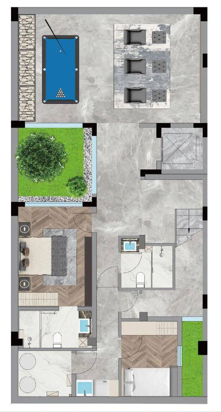 【户型鉴赏】E户型建筑面积:约118-137㎡户型格局:4+1 房3厅7卫【多功能层平面图】