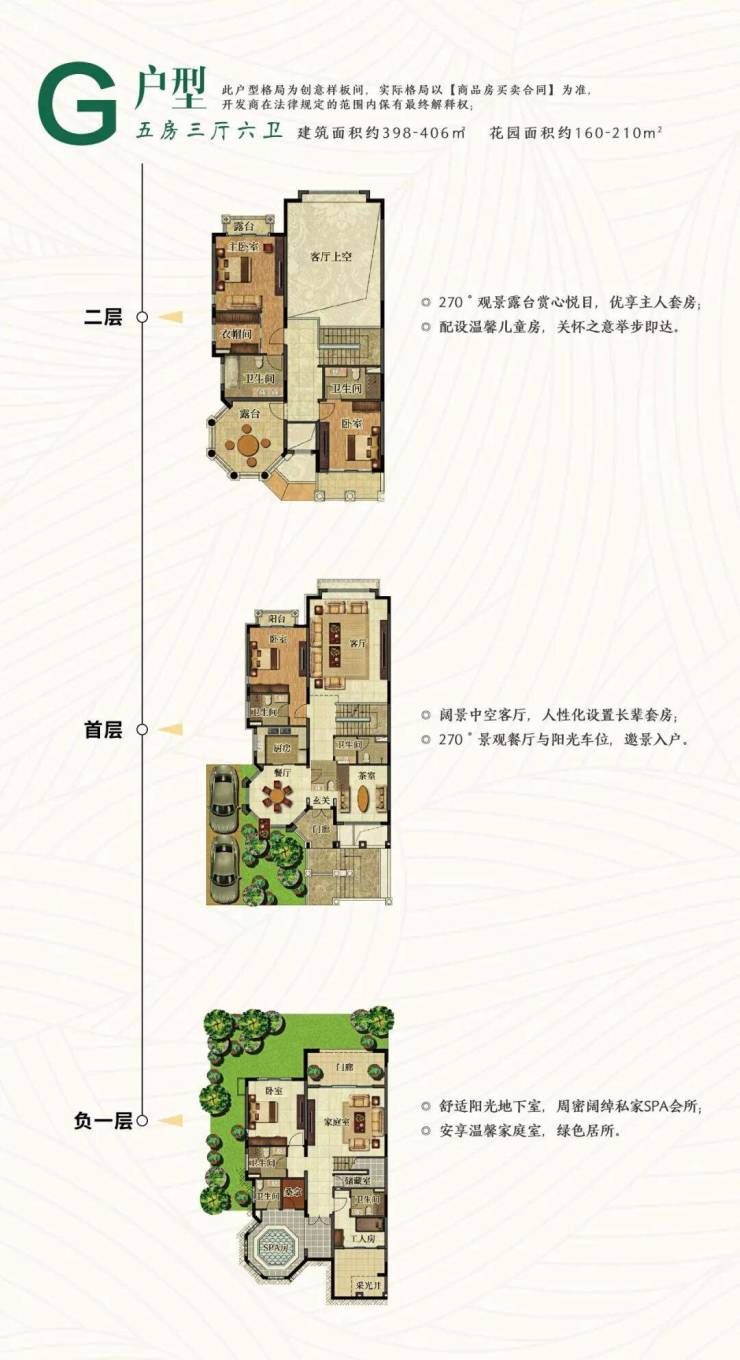 而珠江国际城别墅,负一层和首层均设有绿地花园,总花园面积约160-210㎡!