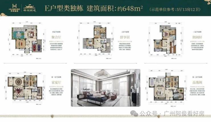 「产品详情」:别墅、叠墅、大平层等全系户型图、主力面积段、实际得房率