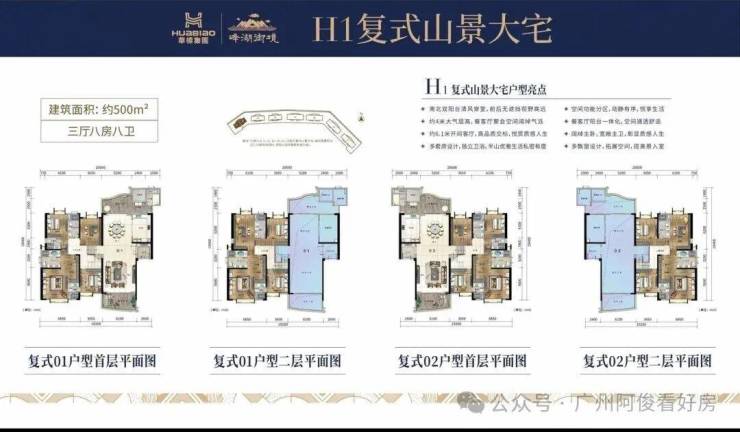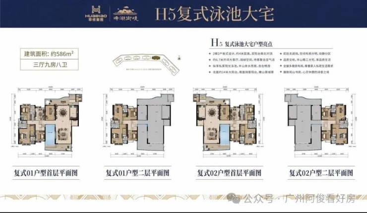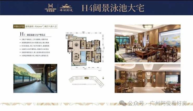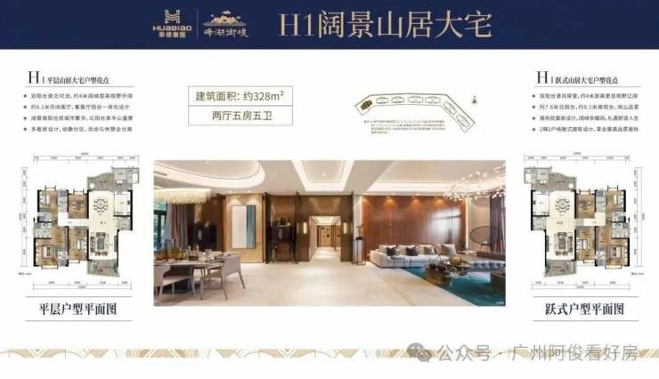 君临大宅(大平层):建面328-586㎡,纯板式南北对流,4米层高+6.7米开间客厅,双阳台设计(山景+城景),精装现楼交付。