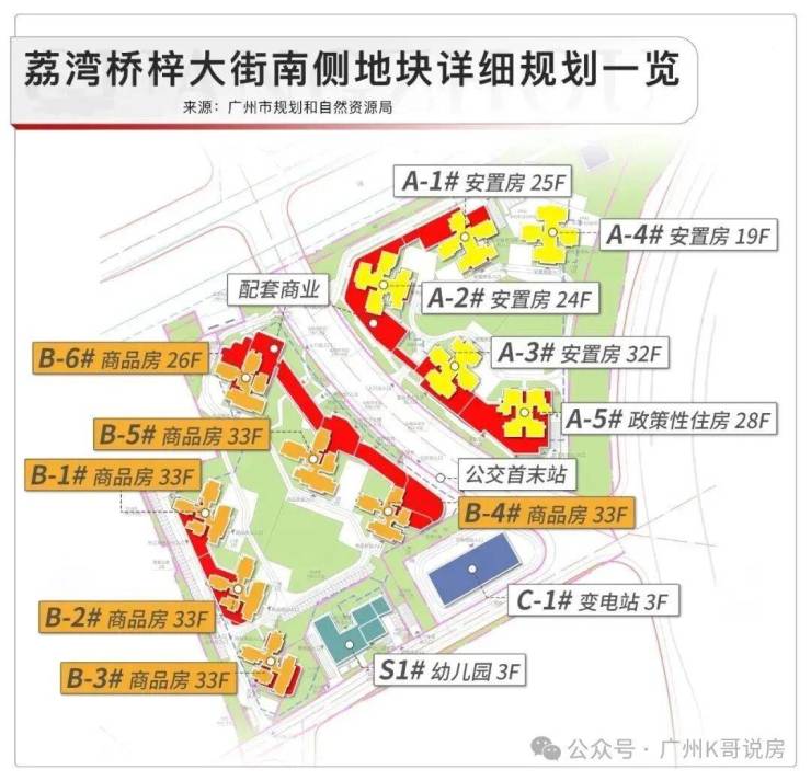 项目商品房位于地块西侧,包括6栋层26-33层住宅,以T5风车型全南向户型规划布局。容积率3.4,计容建面9.86万㎡,得房率基本超100%,拥有1.8万㎡围合式大园林及1.5万㎡红线内外绿化与江景资源,致力打造成白鹅潭品质舒居标杆。