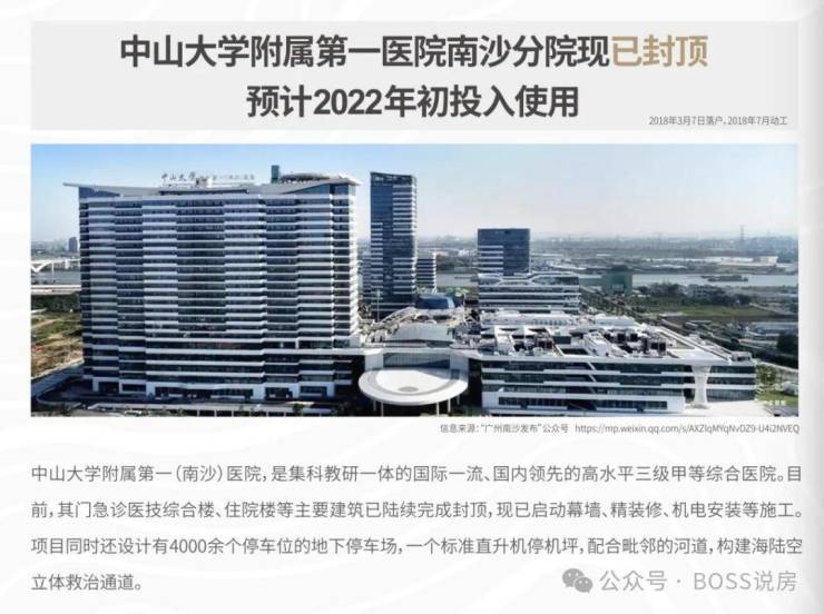 中山大学附属第一医院南沙分院(已开业),国内领先高水平三甲医院。