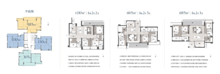 产品详情:户型图、主力面积段、梯户比、得房率、装修标准、交房时间、开盘时间
