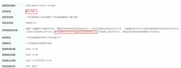 需要注意的是,项目备案总投资约为5.1亿元,比当初番禺置业3.1亿元的拿地价,增加了2亿元。