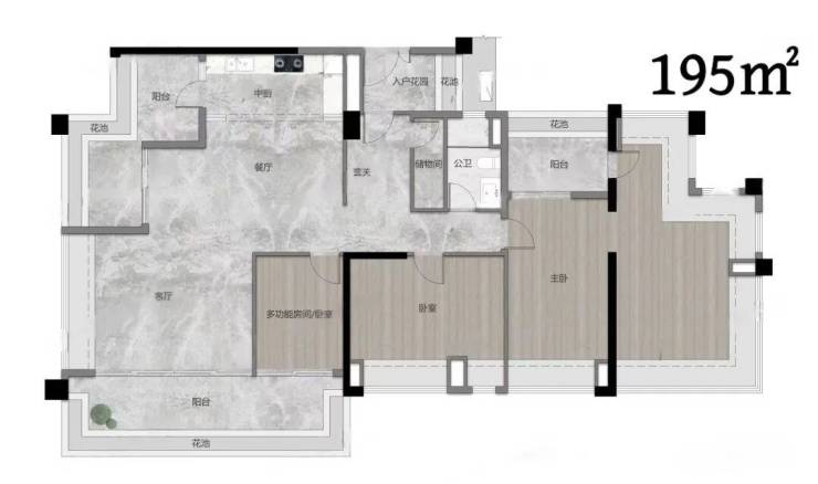 建面约195平的户型,阳台长度做到约8米,整个LDK客餐厅面积约达到70方,两侧观江面加起来更长达约16米!不夸张的说,整个LDK空间感堪比酒店的江景宴会厅!