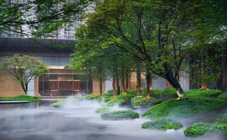 西派天河序的园林也很特别,这是亚洲景观大师塔瓦才·科博凯奇主笔,汲取泰国顶奢四季酒店生态灵感,与云山珠水的在地风貌结合打造的。
