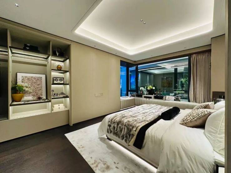 主卧面积约27㎡,配备全明衣帽间和环幕飘窗。