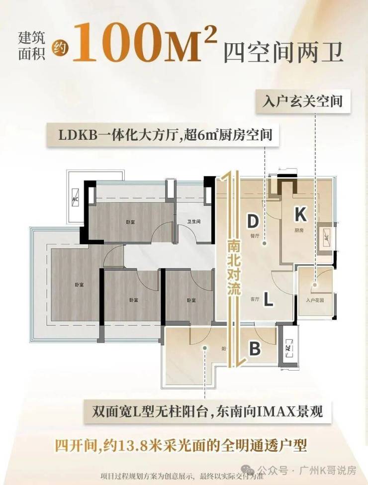 客餐厅、主卧套间是真正的南北对流,不是伪对流,还有超长阳台,实用满分。