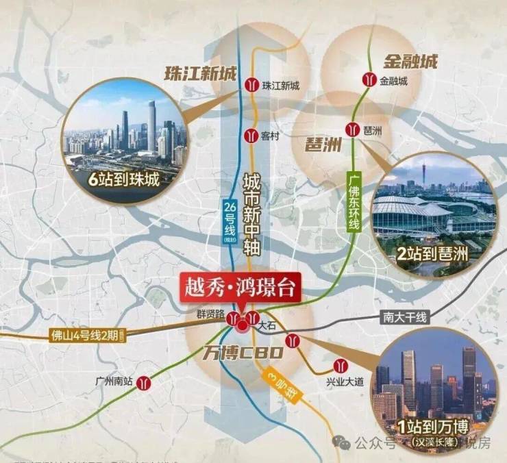 临近26号线群贤路站(规划中,首次环评已通过),5站客村,6站珠城,与3号线平行有效分流通勤。